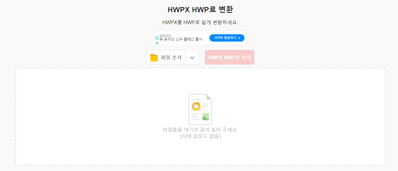 그러면 이런 페이지로 이동이 될텐데, 파일을 끌어다놓거나 '파일 추가'를 클릭합시다.
