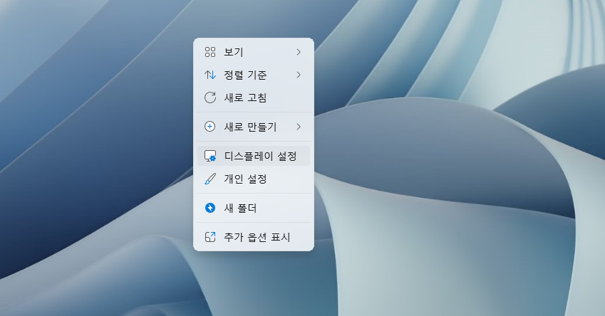 바탕화면 공백에 우클릭 후, '디스플레이 설정'을 클릭해주세요.