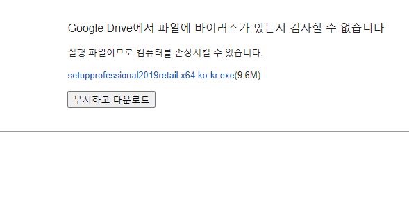 안전한 ms오피스 설치 파일일뿐이니, '무시하고 다운로드' 버튼을 클릭해주세요.