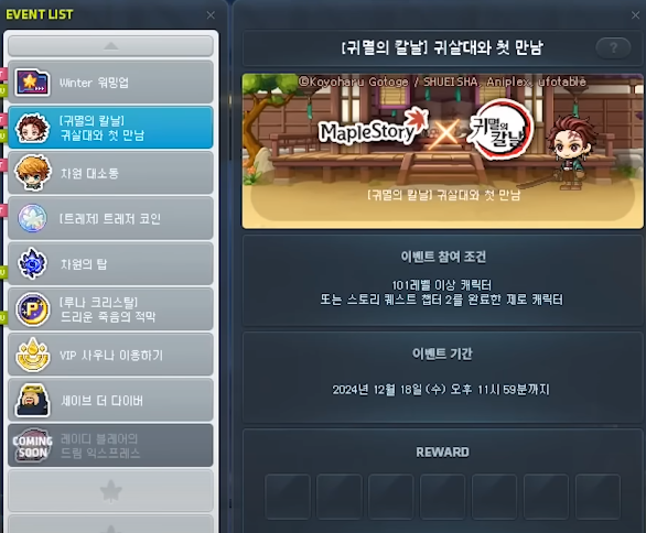 KMS 메이플스토리 귀멸의 칼날 콜라보 내용(일반 월드)