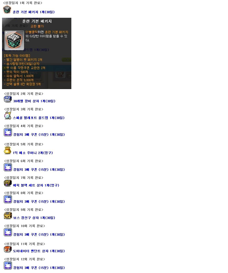 성장일지의 보상으로는 대강 이러한 육성에 도움되는 아이템들이 지급됩니다.