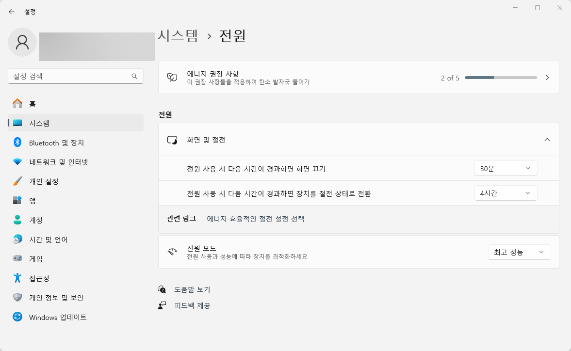 윈도우11 자동 화면 꺼짐 시간 설정하기 - 설정
