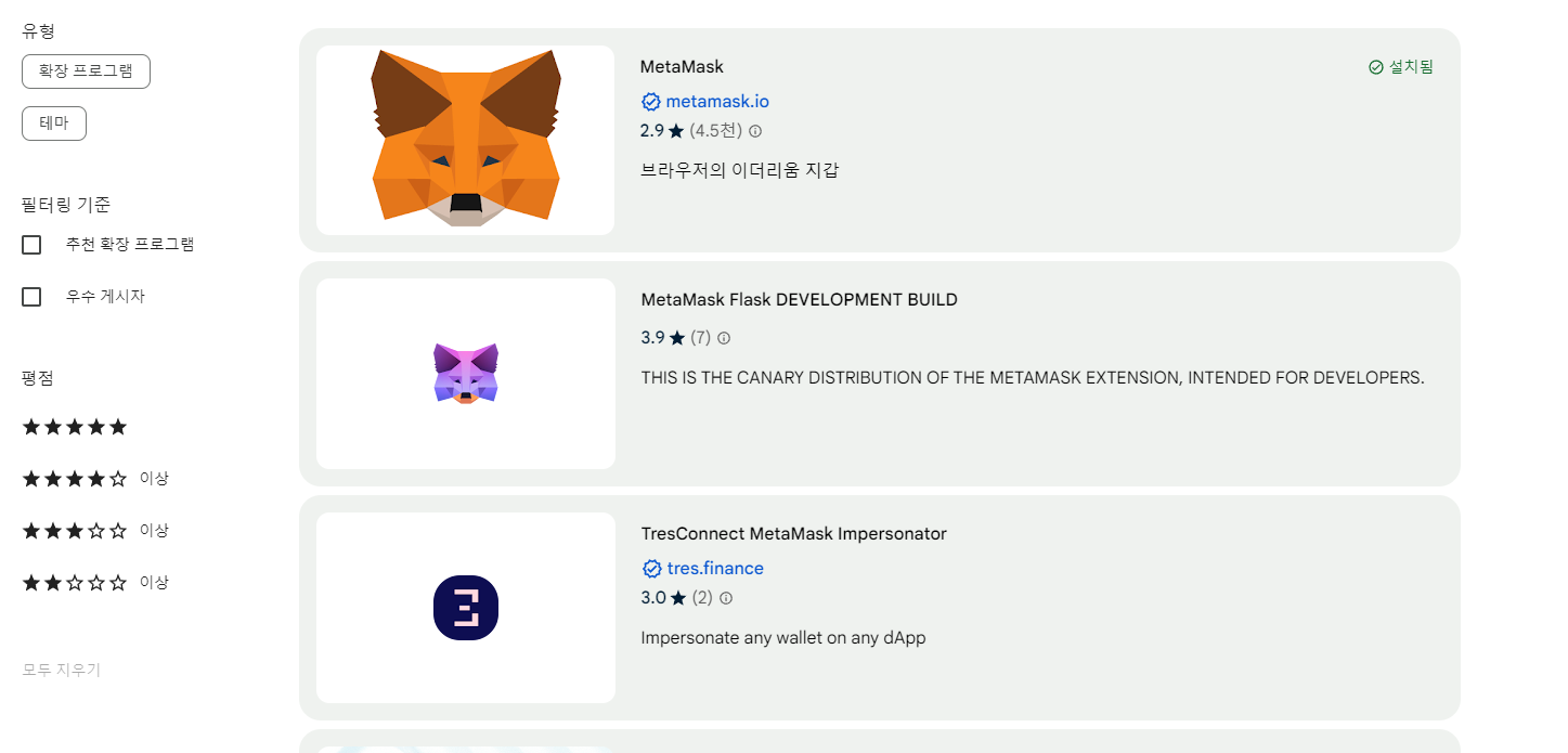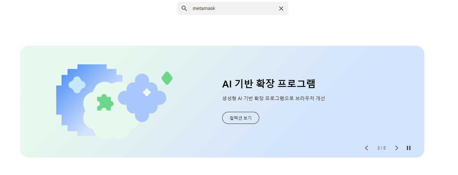 그리고 바로 'metamask'를 상단 검색창에 입력해서 검색해봅시다.