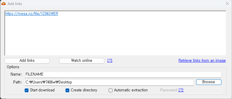 해당 프로그램은 다운로드하고자 하는 메가 파일의 링크만 있다면 제한없이 다운가능합니다.