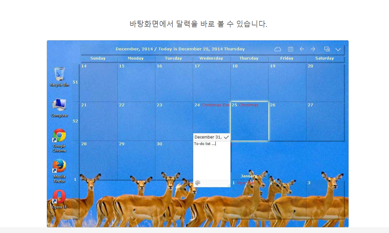 바탕화면에 이런 식으로 달력이 생기는 프로그램입니다.