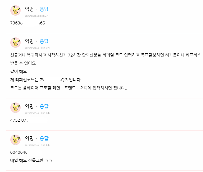 그런 분들을 위한 포켓몬 고 유저 게시판이 있습니다. 친구 코드의 교환뿐만 아니라, 신규 유저 혹은 복귀 유저에게 혜택을 주는 리퍼럴 코드의 교환또한 이루어지니 참고해주세요.