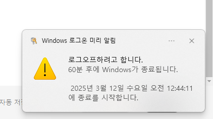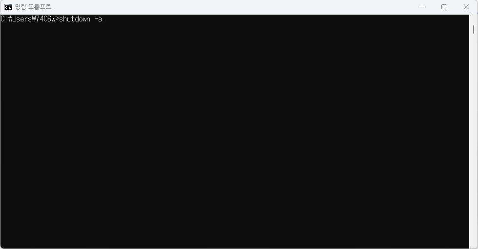 다른 명령어인 'shutdown -a'로 예약 종료를 취소하는 것도 가능합니다. 명령어를 입력하면 로그오프 예약이 취소되었다고 알림이 나올 겁니다.