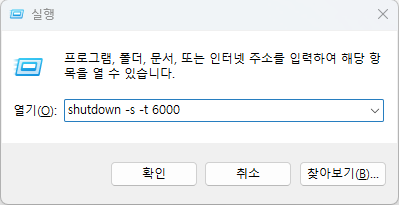 이외에도 윈도우키(시작버튼) + R키를 눌러서 나오는 '실행' 창에서 동일한 명령어를 입력해서 예약 종료하는 것도 가능합니다.