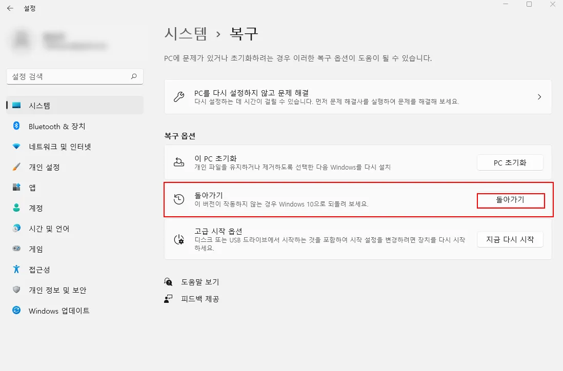 윈도우11에서 윈도우10으로 다운그레이드하는 쉬운 방법