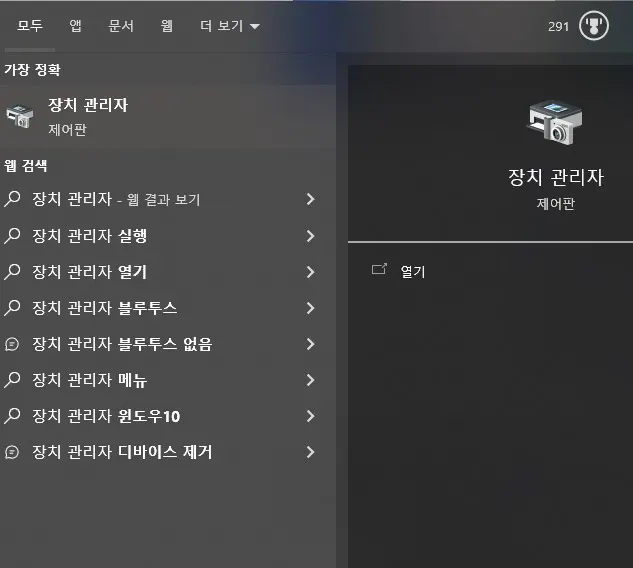 ○ 윈도우 검색바에 장치 관리자를 입력해서 실행합니다.