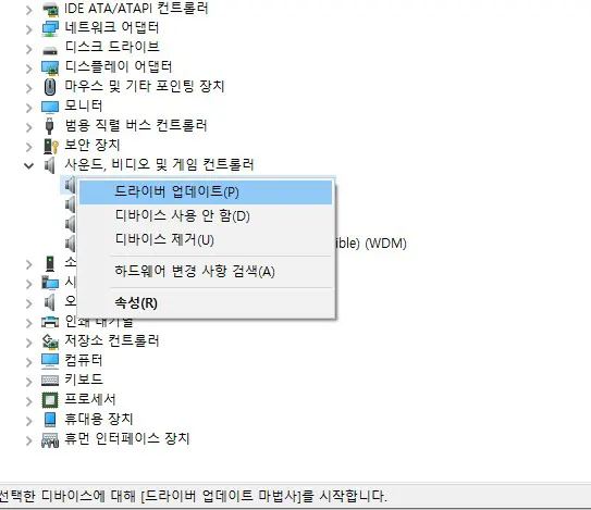 사운드 카드 드라이버 업데이트하기(장치 관리자)